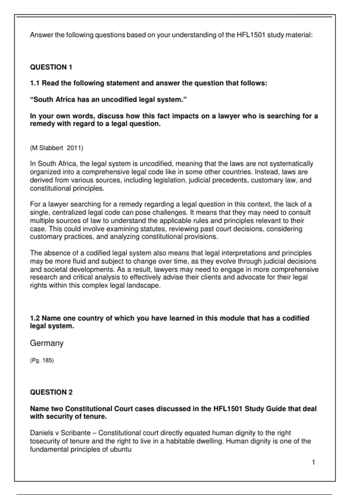 Answer the following questions based on your understanding of the HFL1501 study material:
