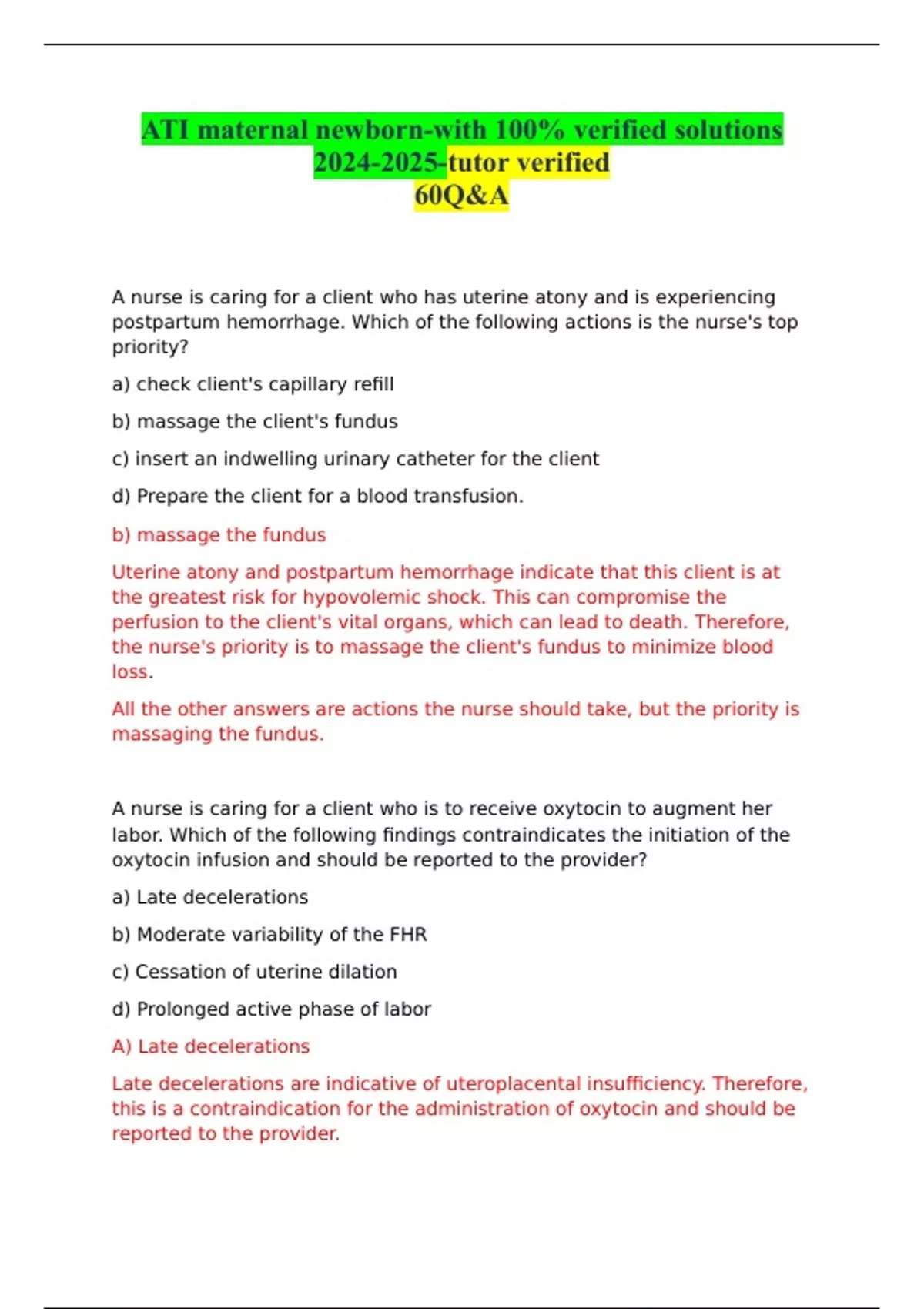 ATI MATERNAL NEWBORN EXAMS -with 100% verified solutions 2024-2025