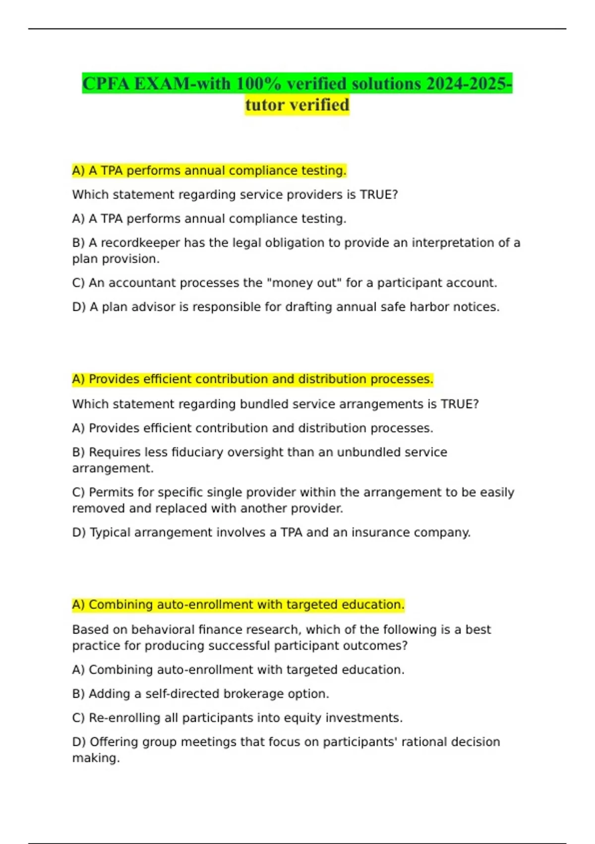 CPFA EXAM-with 100% verified solutions -tutor verified