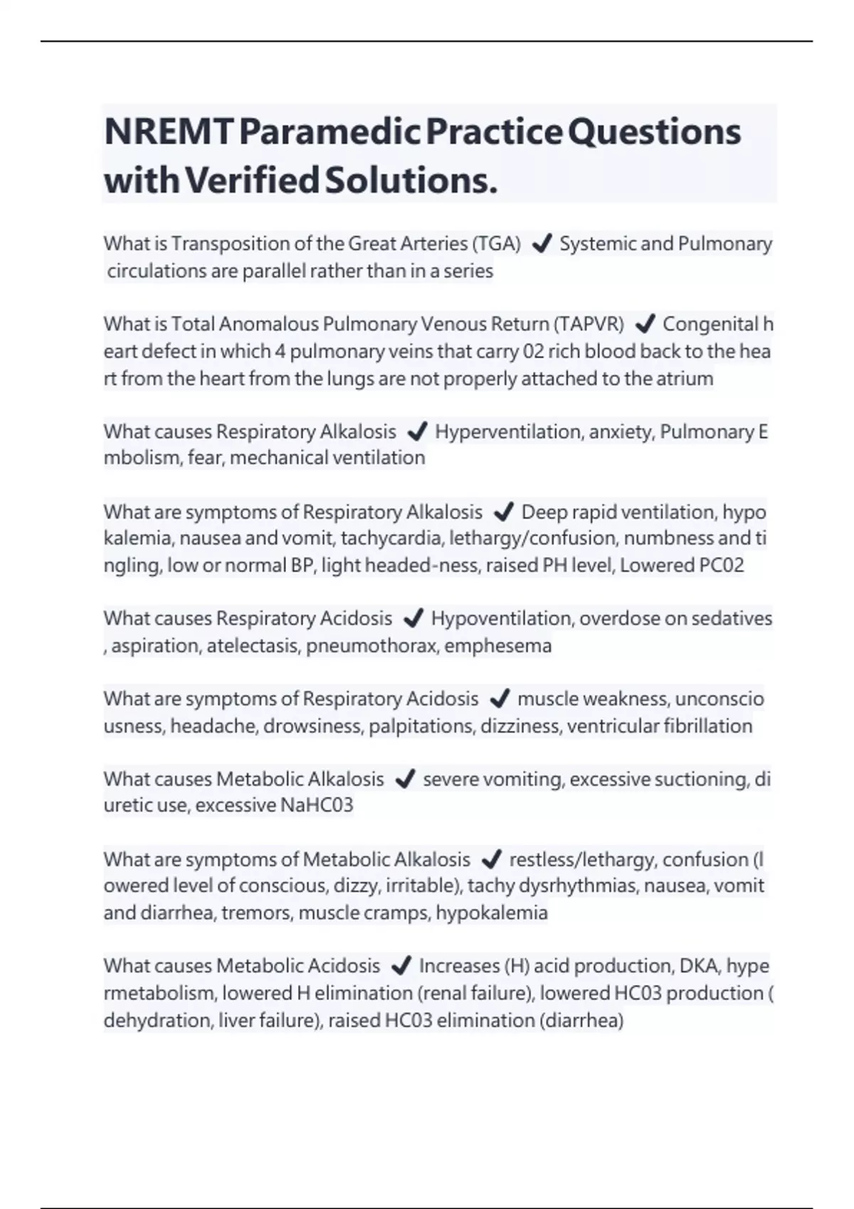 NREMT Paramedic Practice Questions with Verified Solutions | Latest 2024/2025