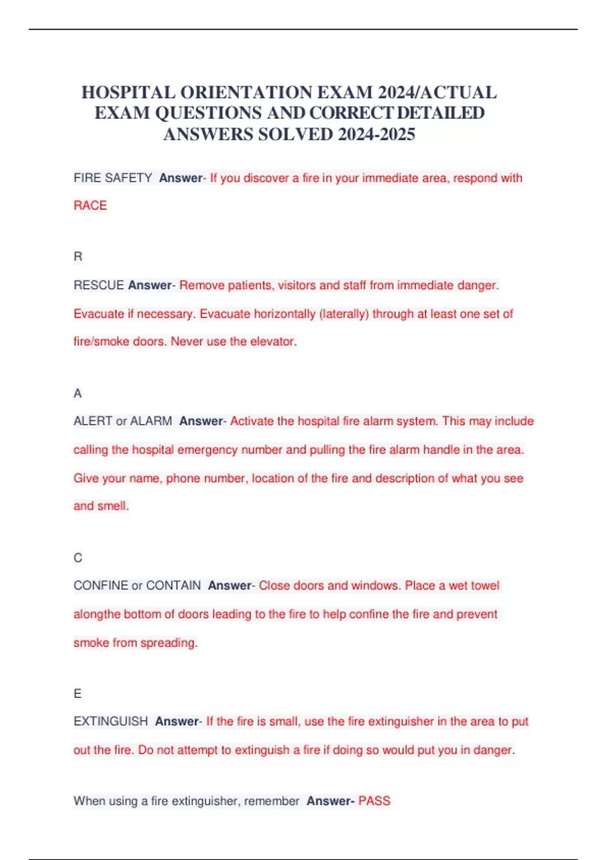 HOSPITAL ORIENTATION EXAM 2024/ACTUAL EXAM QUESTIONS AND CORRECT DETAILED ANSWERS SOLVED