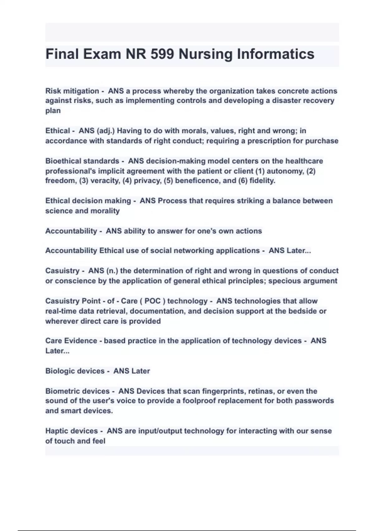 Final Exam NR 599 Nursing Informatics Exam Questions and Answers 2024( A+ GRADED 100% VERIFIED).