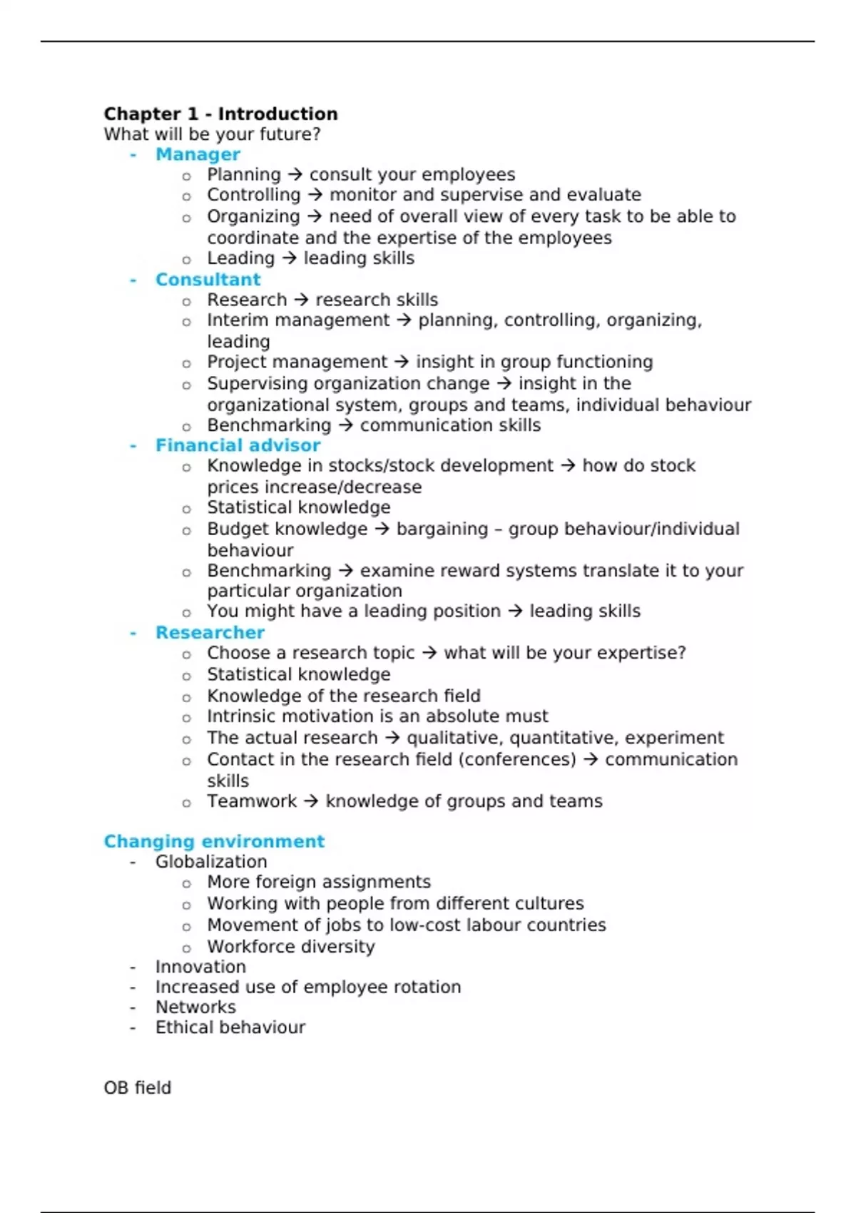 Lecture notes OB for IBA