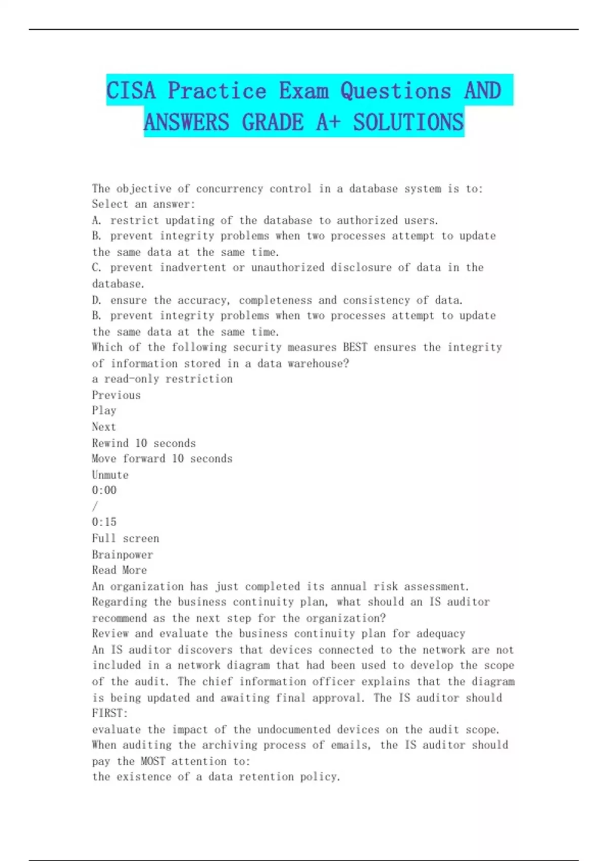 - CISA Practice Exm Qustions