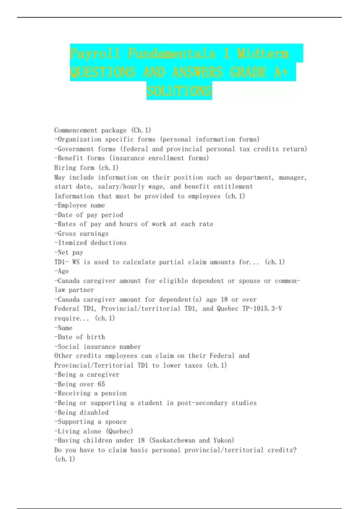 Payroll Fundamentals 1 Midterm QUESTIONS AND ANSWERS GRADE A+ SOLUTIONS