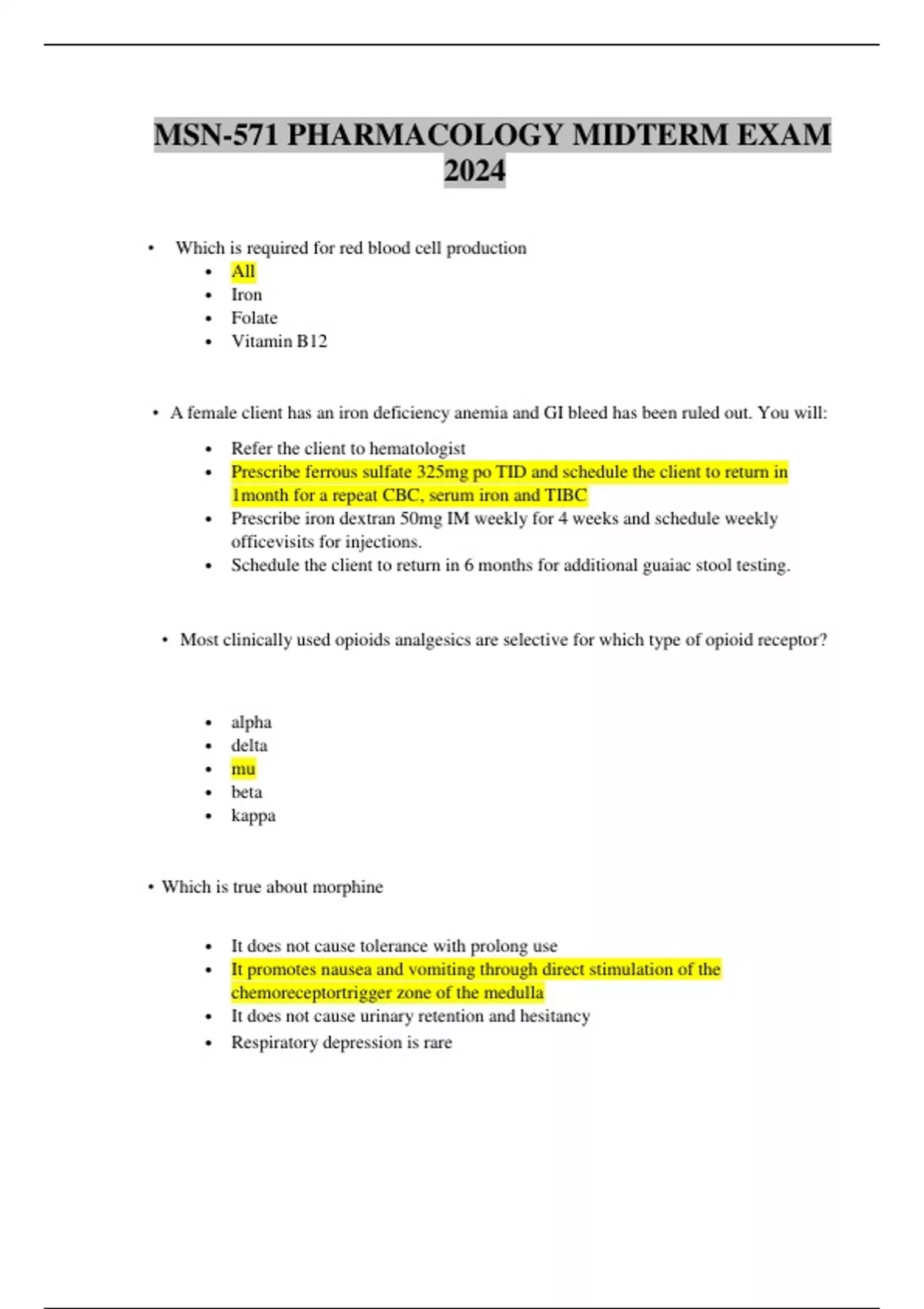 MSN-571 PHARMACOLOGY MIDTERM EXAM 2024