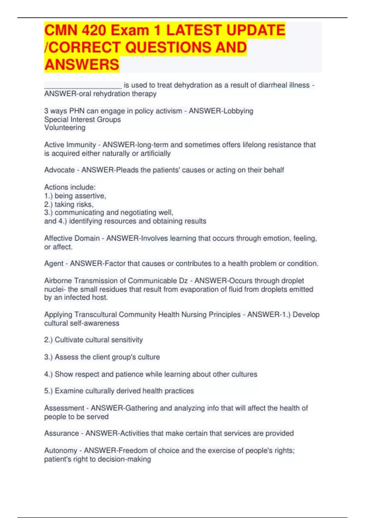CMN 420 Exam 1 LATEST UPDATECMN 420 Exam 1 LATEST UPDATECMN 420 Exam 1 LATEST UPDATECMN 420 Exam 1 LATEST UPDATE