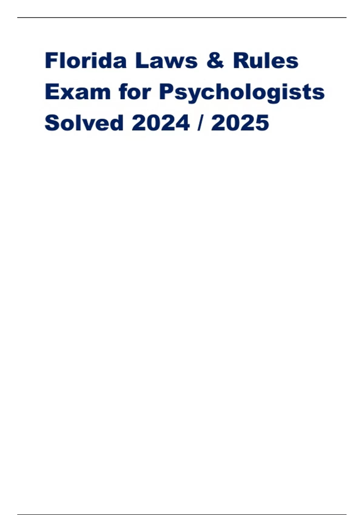 Florida Laws & Rules Exam for Psychologists Solved 2024 / 2025
