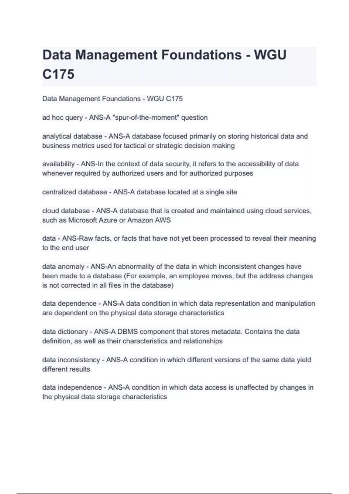 data management foundations wgu c175