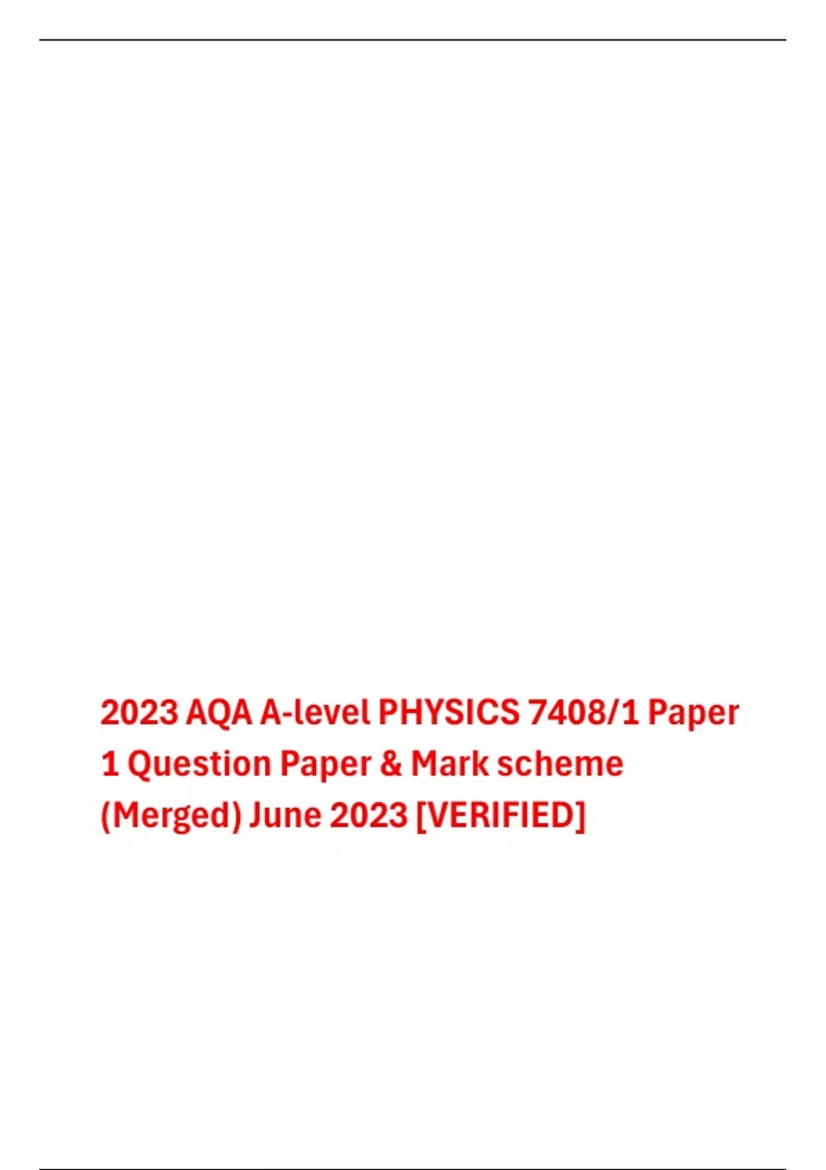 2023 AQA A-level PHYSICS 7408/1 Paper