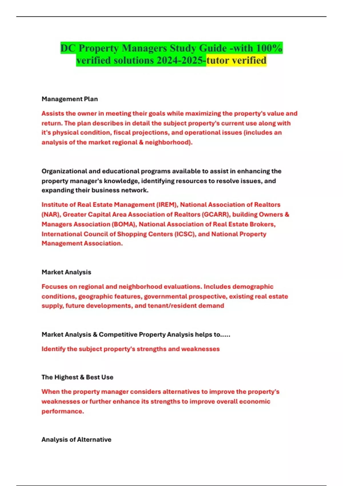 DC Property Managers Study Guide -with 100% verified solutions -tutor verified