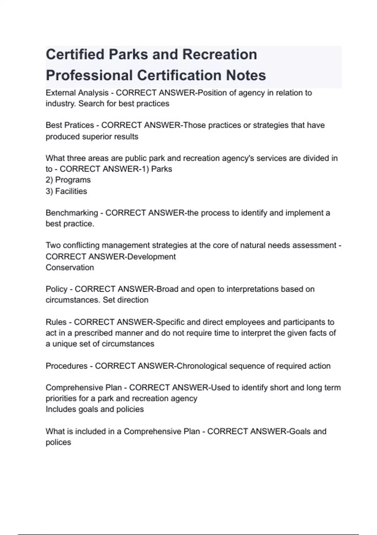 Certified Parks and Recreation Professional Certification Notes Q&A