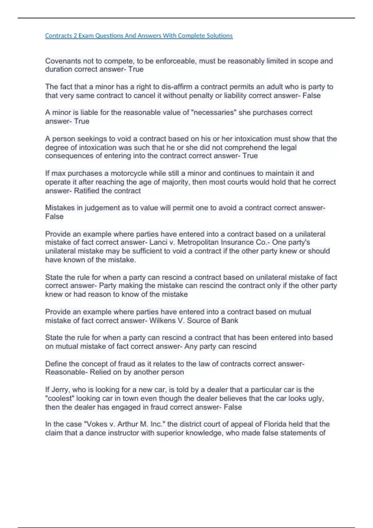 Contracts 2 Exam Questions And Answers With Complete Solutions Contracts 2 Exam Questions And Answers With Complete Solutions