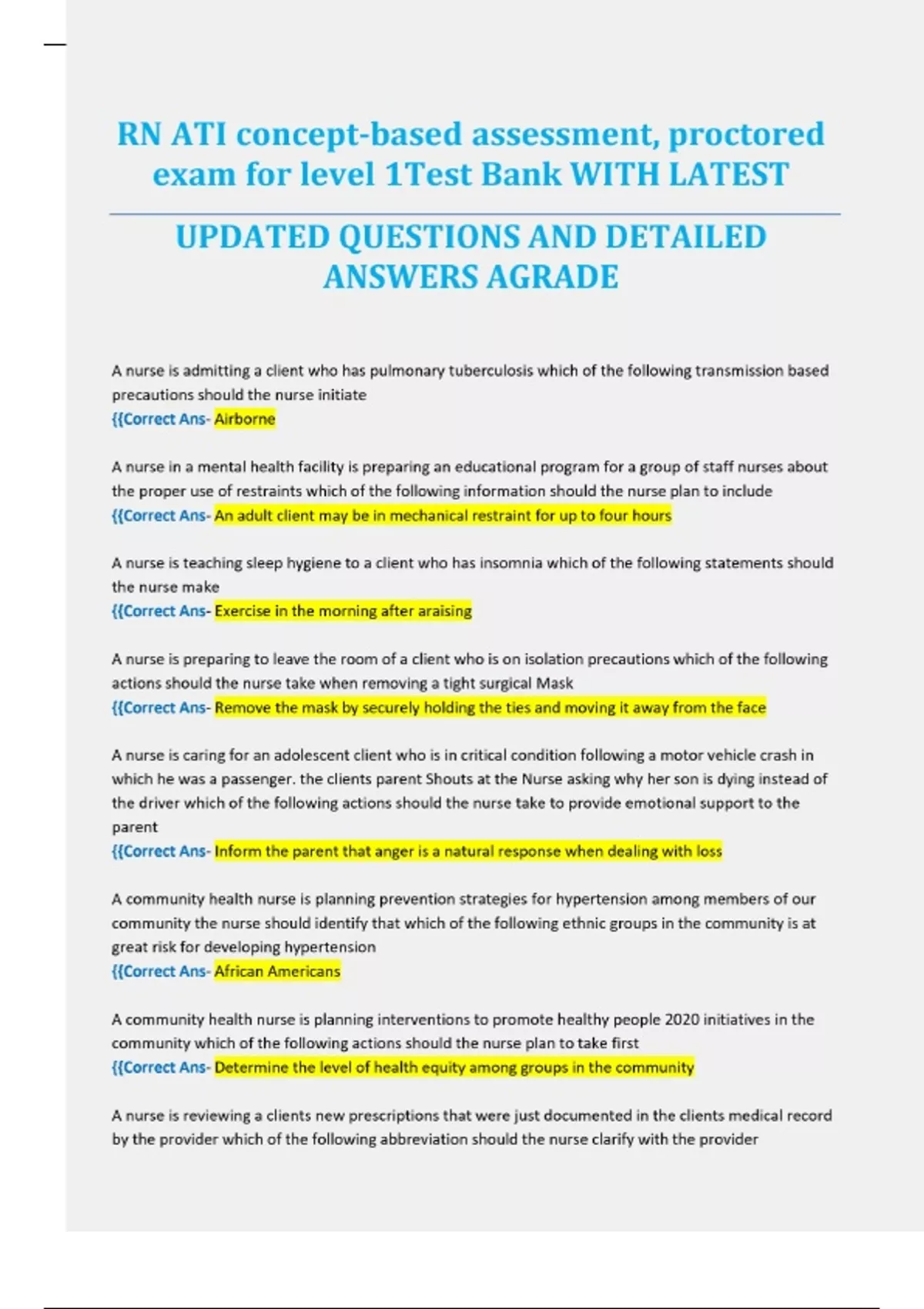 RN ATI concept-based assessment, proctored exam for level 1Test Bank WITH LATEST UPDATED