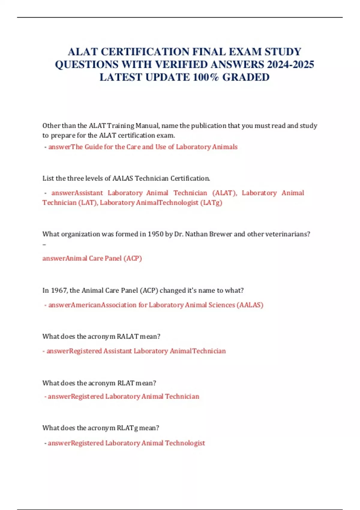 ALAT CERTIFICATION FINAL EXAM STUDY QUESTIONS WITH VERIFIED ANSWERS LATEST UPDATE 100% GRADED