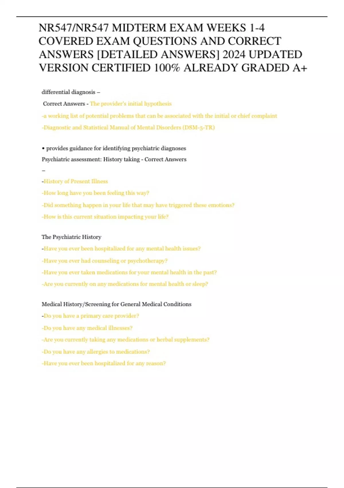 NR547/NR547 MIDTERM EXAM WEEKS 1-4 COVERED EXAM QUESTIONS AND CORRECT ANSWERS [DETAILED ANSWERS] 2024 UPDATED VERSION CERTIFIED 100% ALREADY GRADED A+