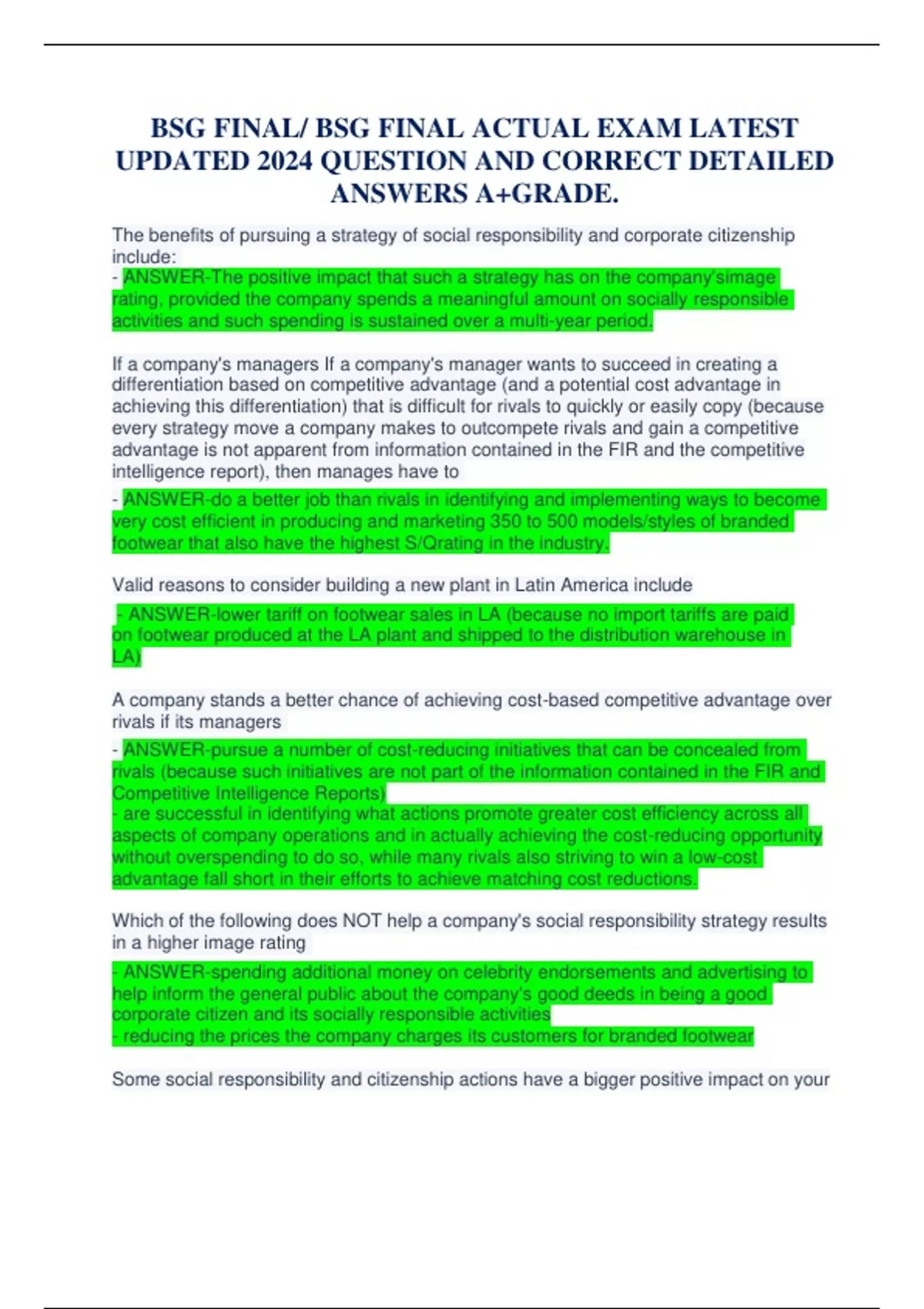 BSG FINAL/ BSG FINAL ACTUAL EXAM LATEST UPDATED 2024 QUESTION AND CORRECT DETAILED ANSWERS A+GRADE.