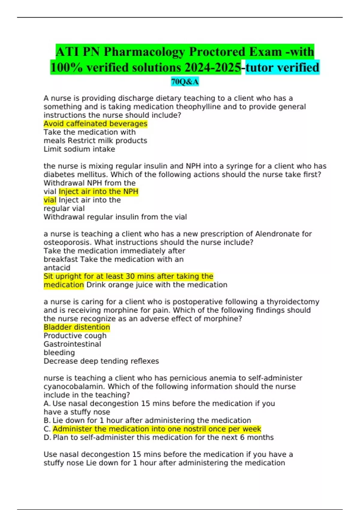 ATI PN Pharmacology Proctored Exam -with 100% verified solutions -tutor verified.docx