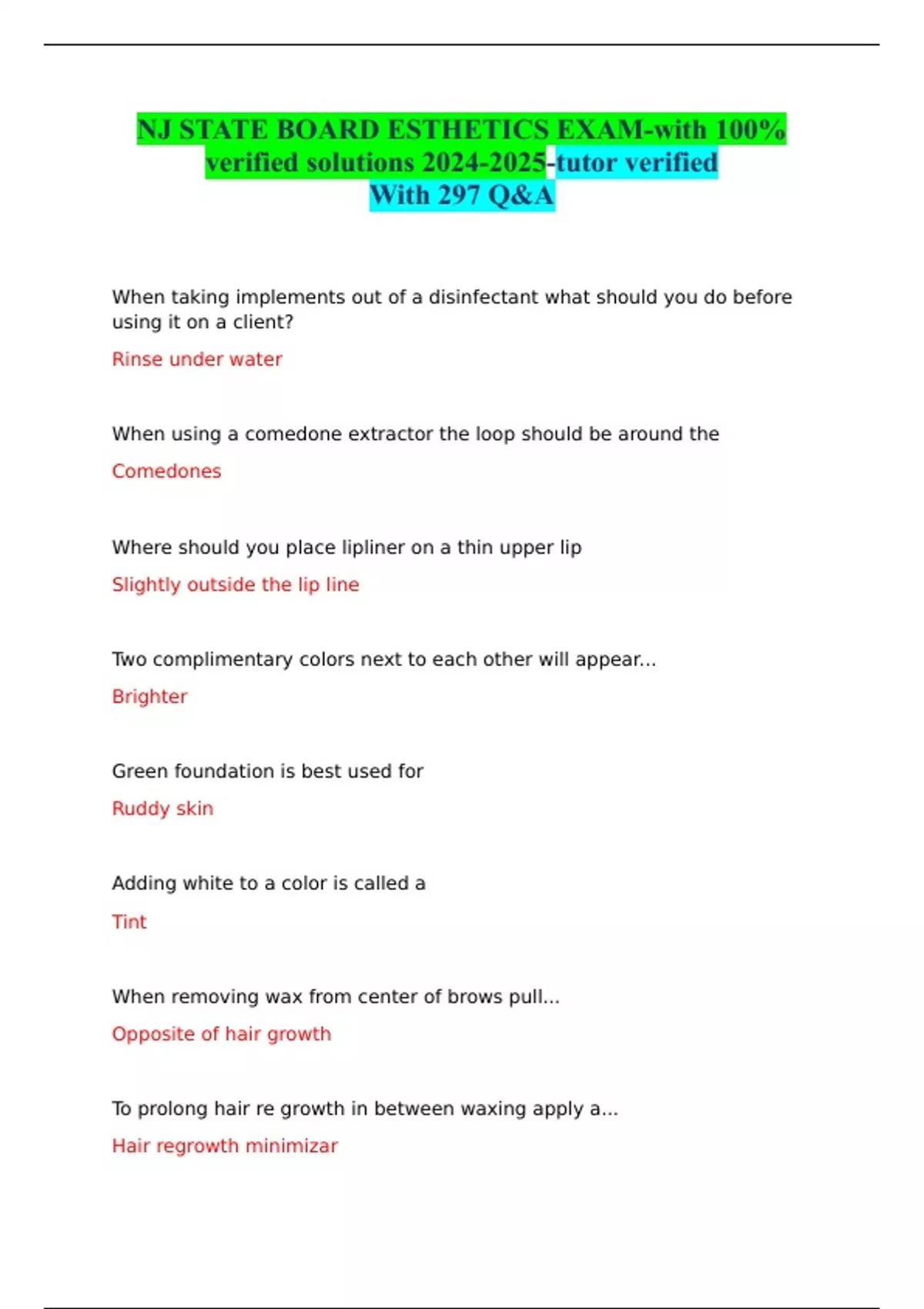 NJ STATE BOARD ESTHETICS EXAM-with 100% verified solutions -tutor verified