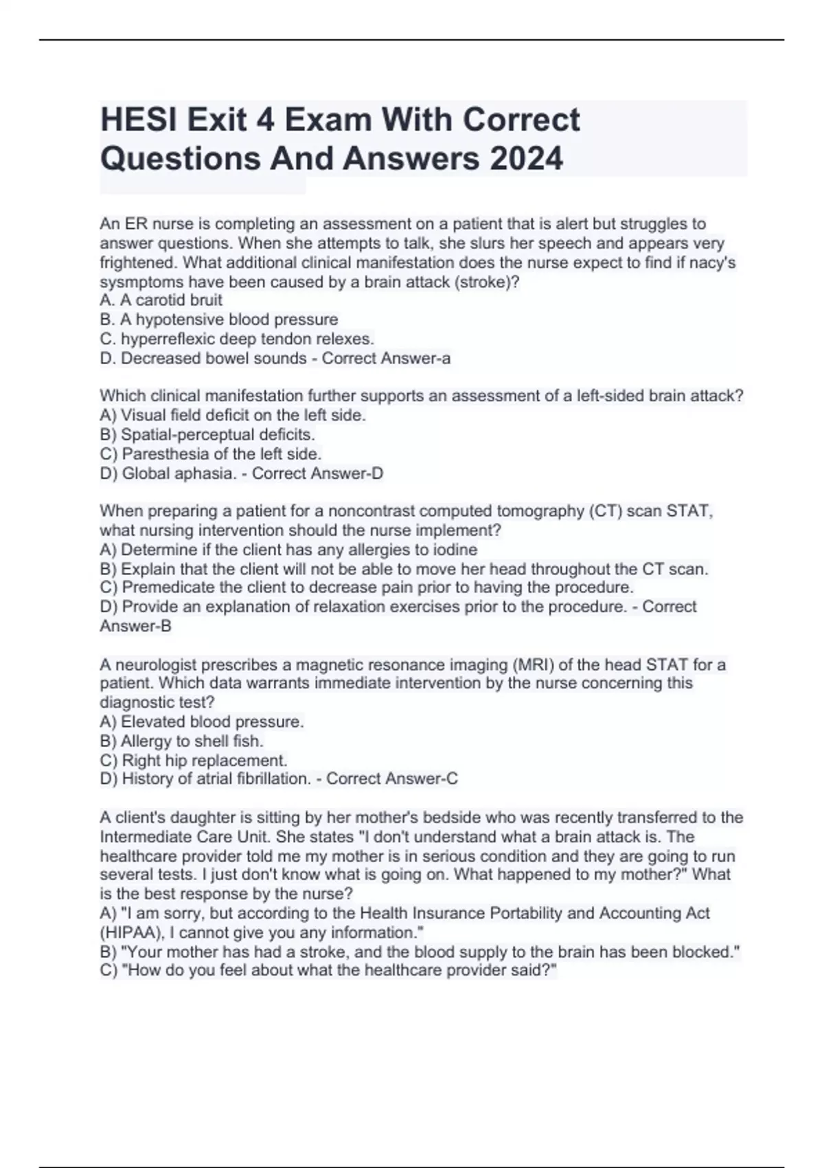HESI Exit 4 Exam With Correct Questions And Answers 2024