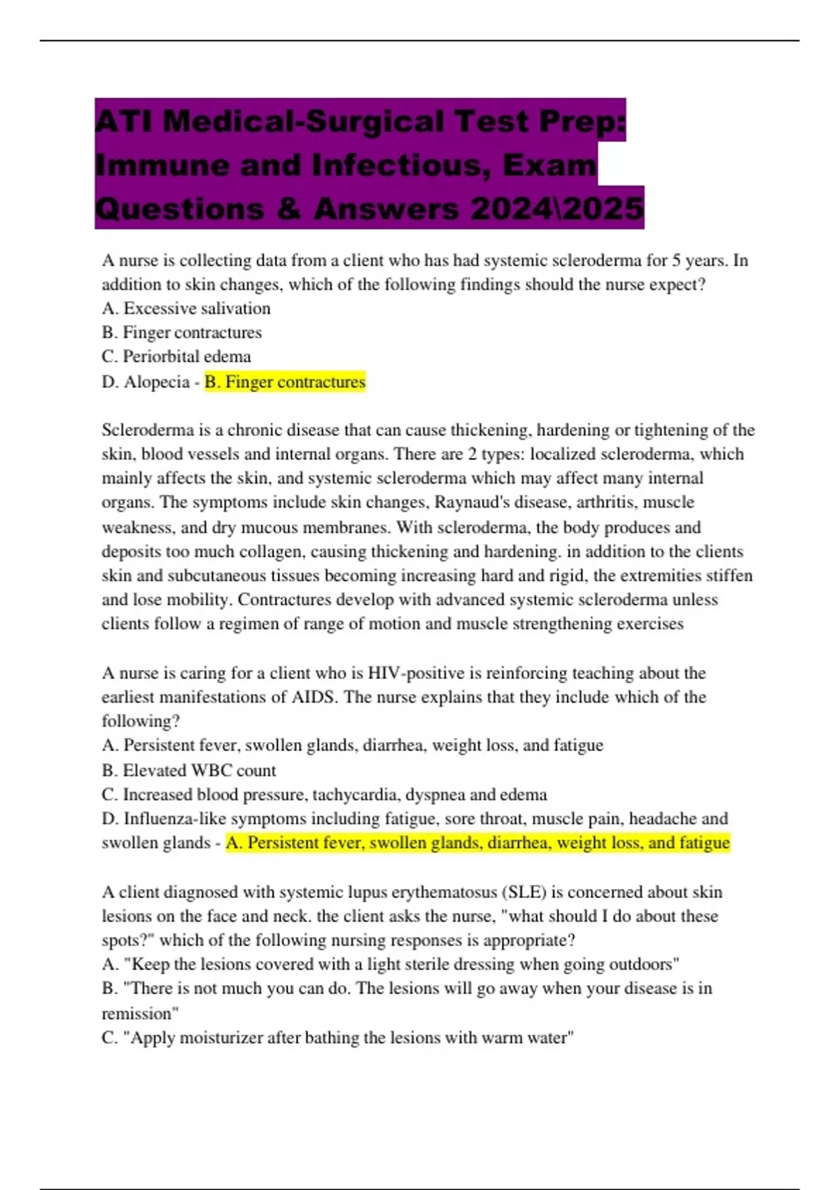 ATI Medical-Surgical Test Prep: Immune and Infectious, Exam Questions & Answers 2024202