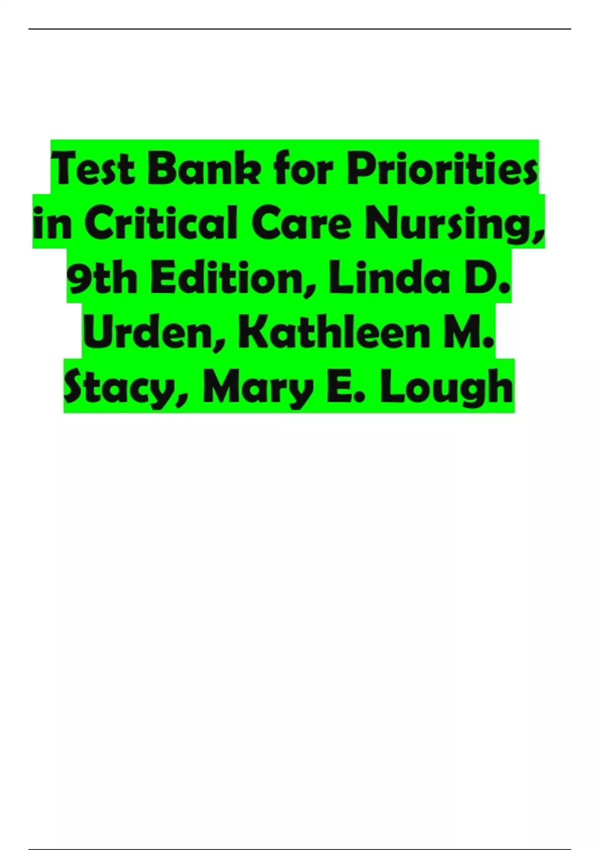 Test Bank for Priorities in Critical Care Nursing, 9th Edition, Linda D. Urden, Kathleen M. Stacy, Mary E. Lough