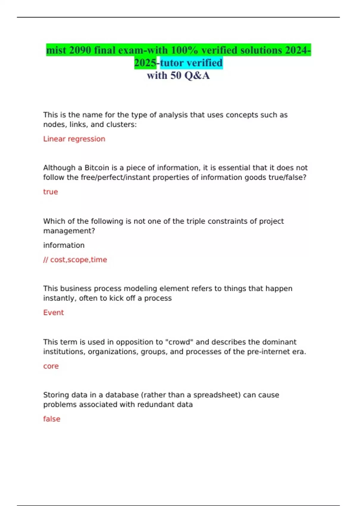 mist 2090 final exam-with 100% verified solutions -tutor verified