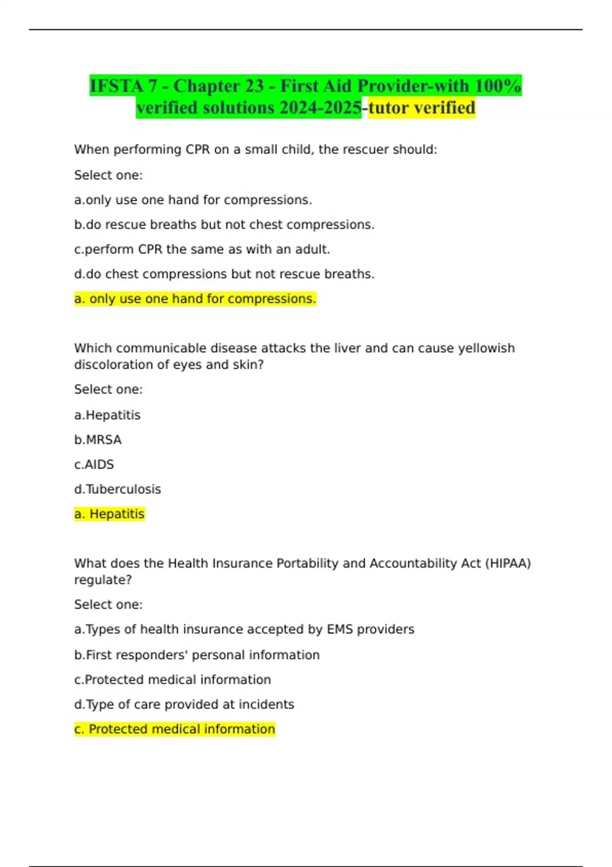 IFSTA 7 - Chapter 23 - First Aid Provider-with 100% verified solutions -tutor verified