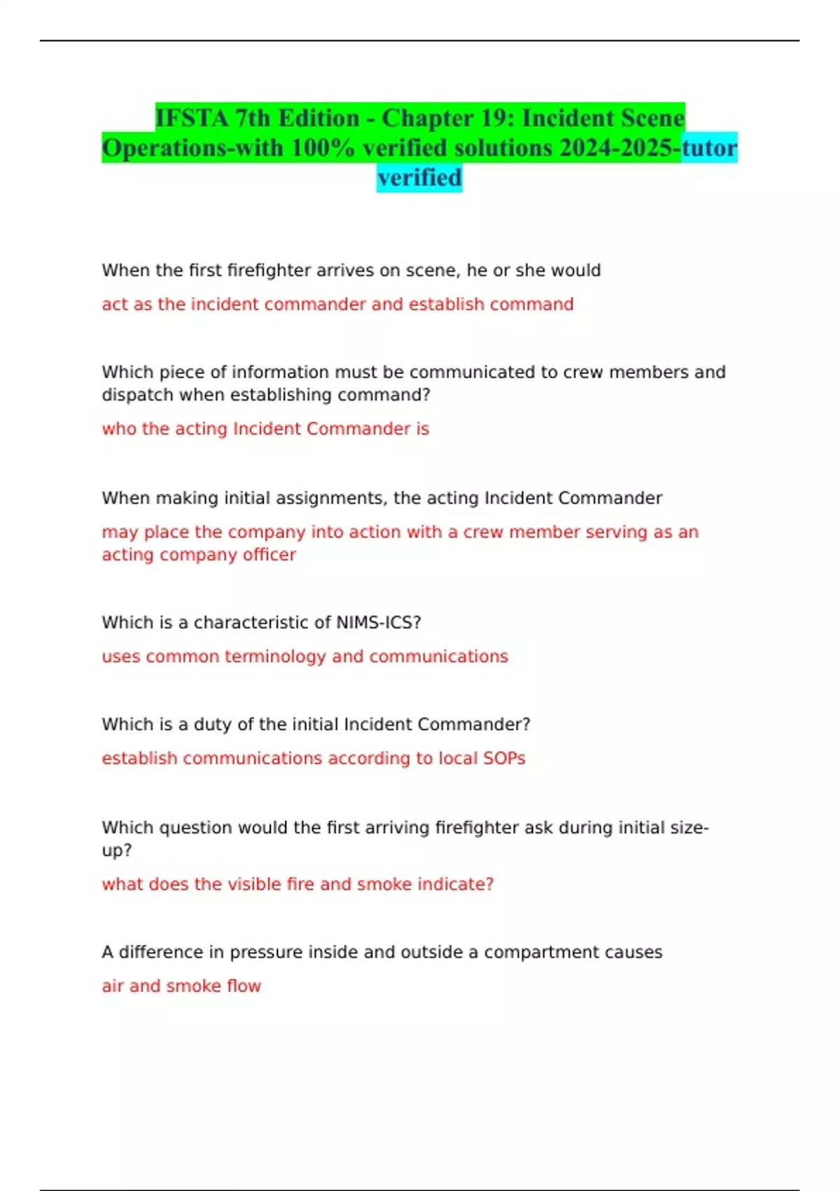 IFSTA 7th Edition - Chapter 19: Incident Scene Operations-with 100% verified solutions -tutor verified
