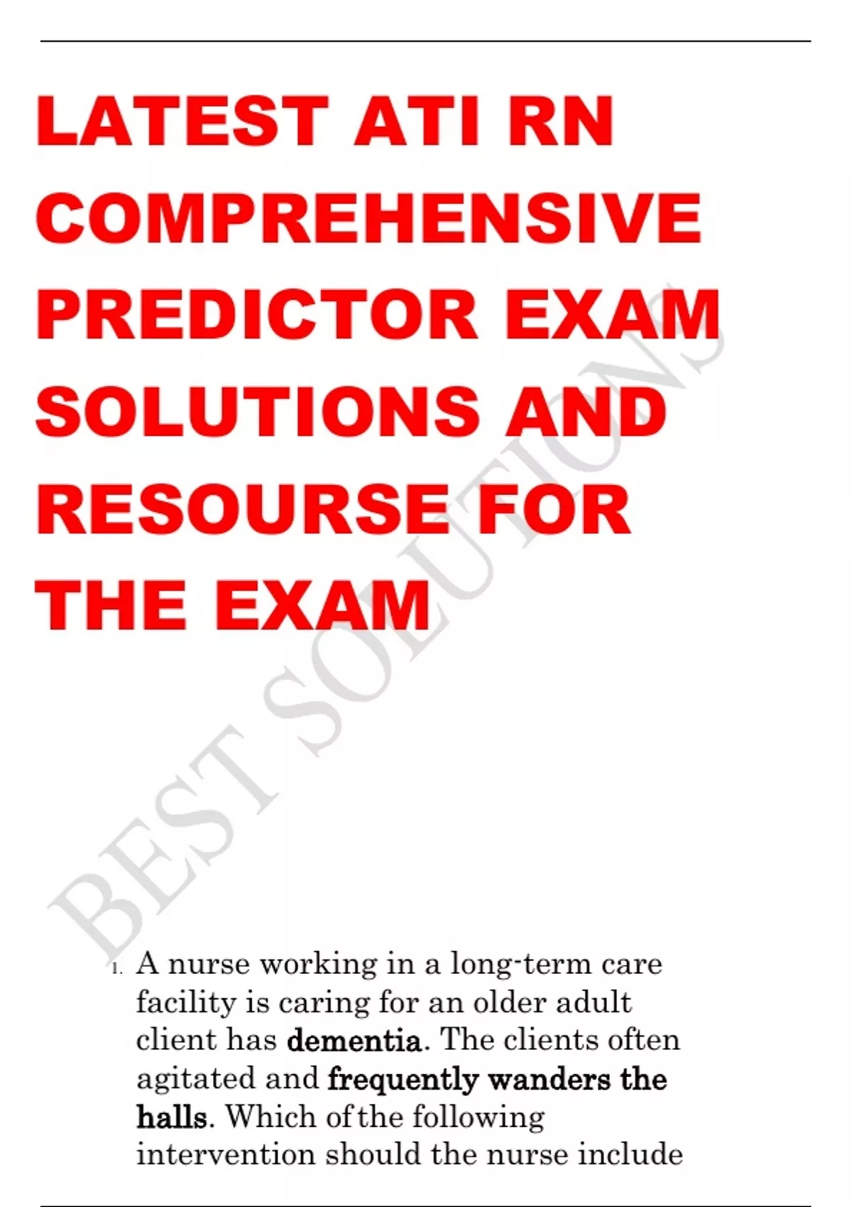 LATEST ATI RN COMPREHENSIVE PREDICTOR EXAM SOLUTIONS AND RESOURSE FOR THE EXAM