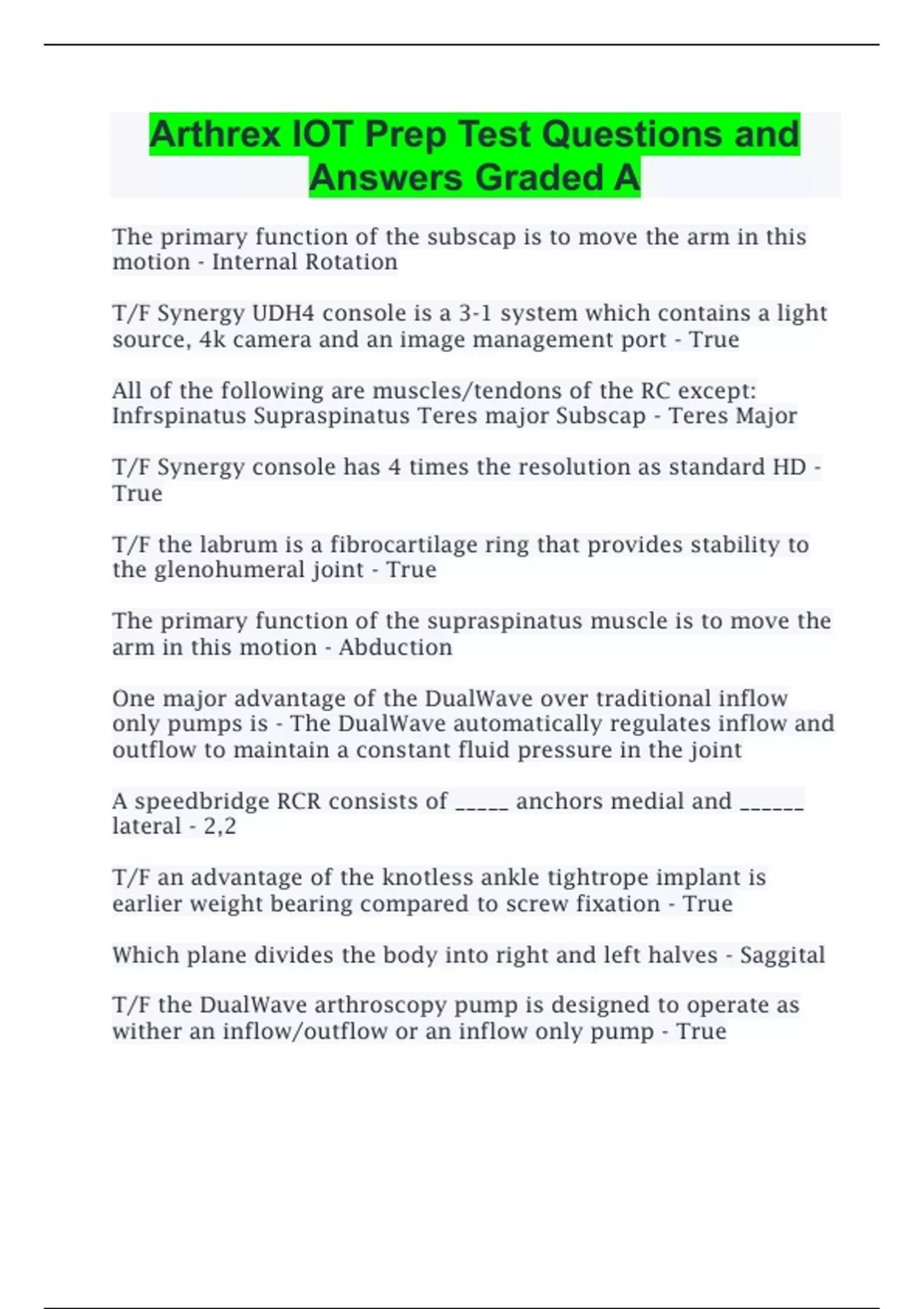 Arthrex IOT Prep Test Questions and Answers Graded A