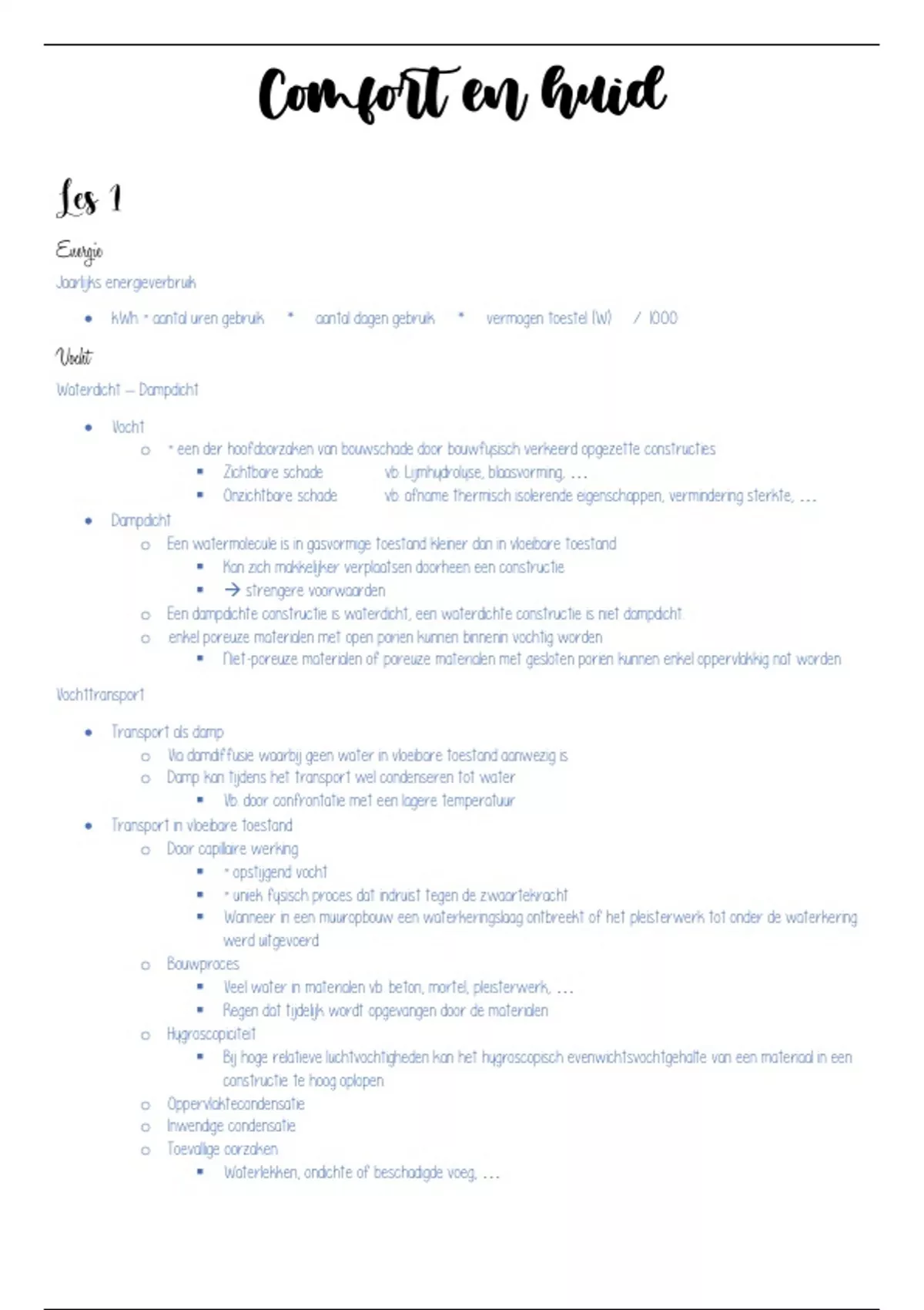Samenvatting volledige cursus + lesnotities comfort en huis. Compleet met foto's, formules en definities.