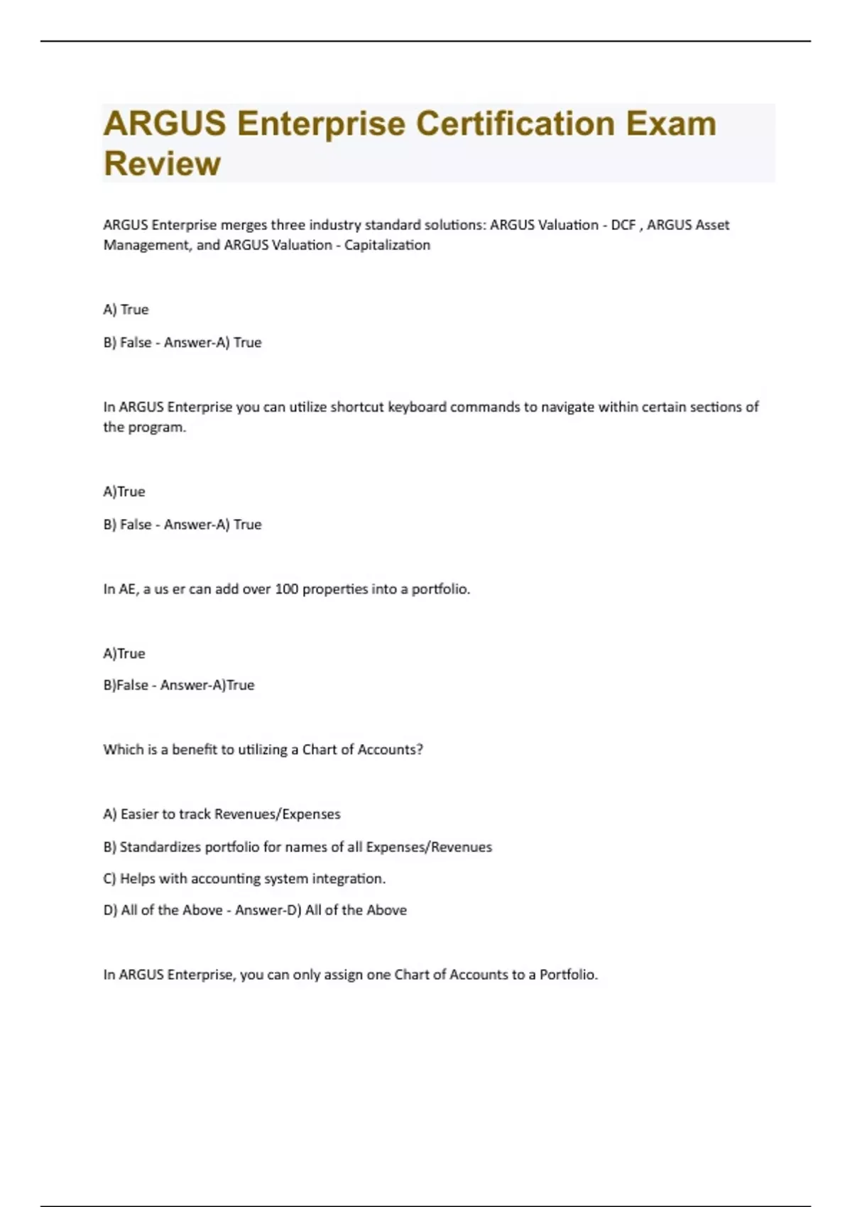 ARGUS Enterprise Certification Exam Review Questions With 100% Correct