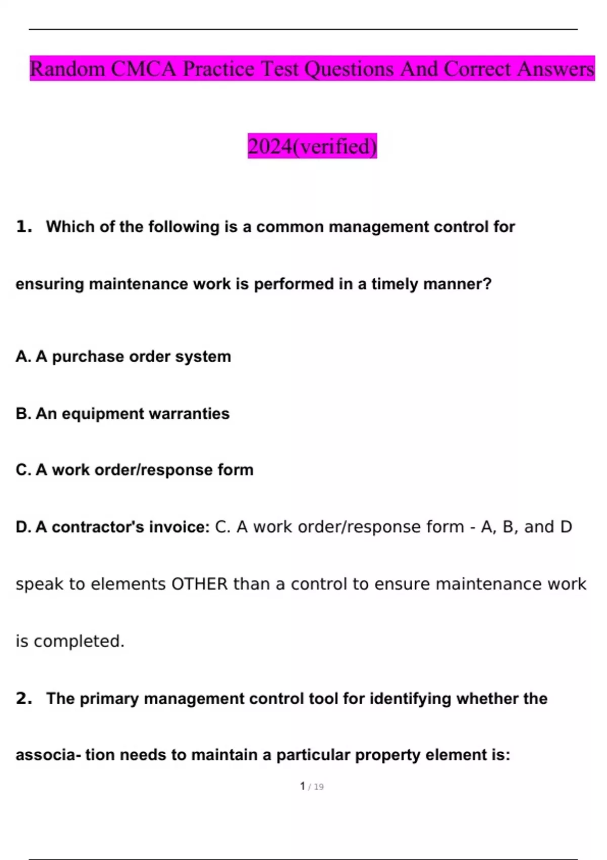Random CMCA Practice Test Questions !! With Correct Answers