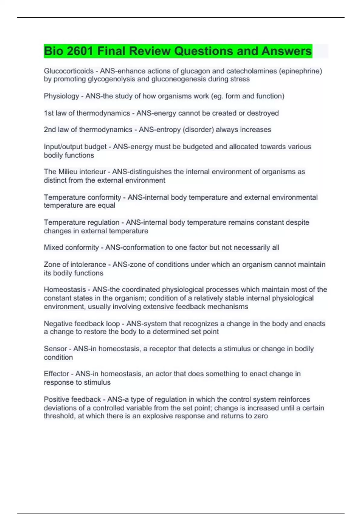 Bio 2601 Final Review Bio 2601 Final Review Questions and Answers