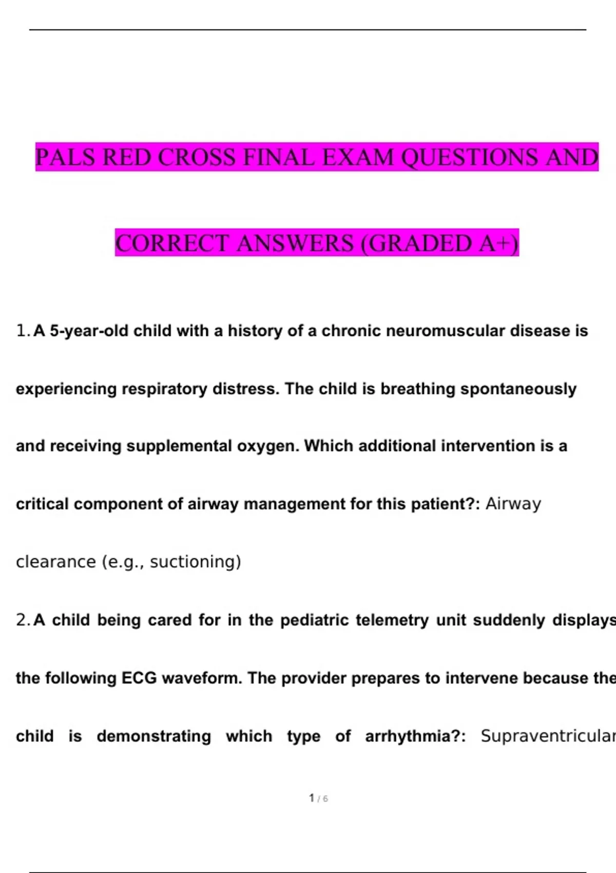 PALS RED CROSS FINAL EXAM QUESTIONS and ANSWERS (GRADED A+)