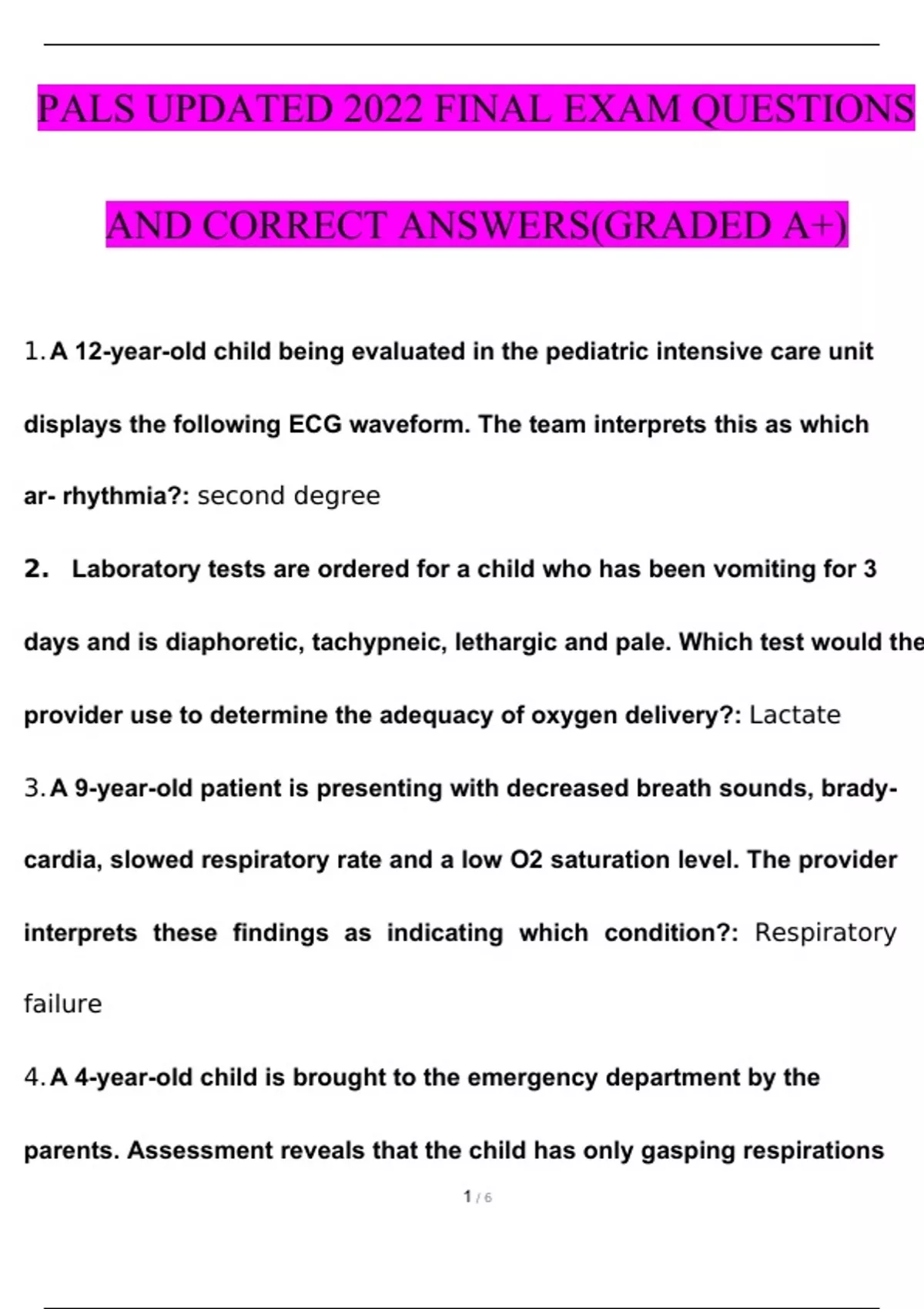 PALS Final Exam; 50 Questions & Answers;Latest Solution/ 100%Verified;PALS Final Exam (Actual Exam)
