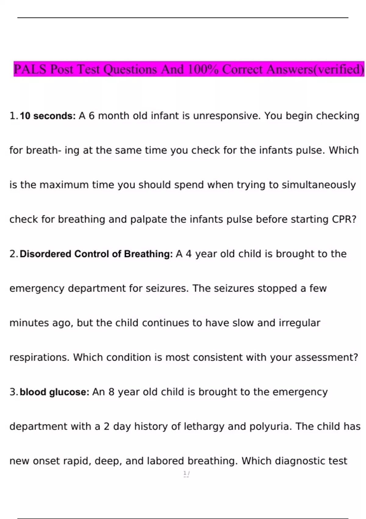 PALS Test 2024/2025 STUDY BUNDLE (COMPLETE PACKAGE DEAL)(Verified Answers)
