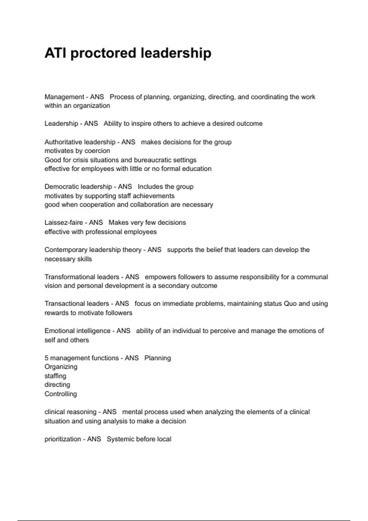 ATI proctored leadership