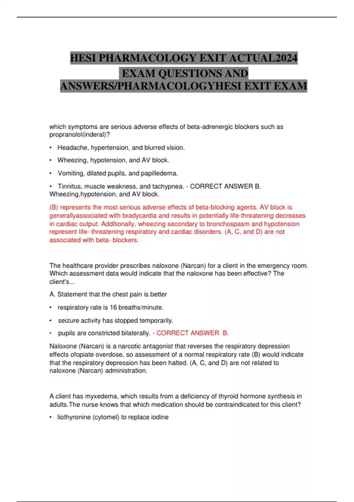 HESI PHARMACOLOGY EXIT ACTUAL2024 EXAM QUESTIONS AND ANSWERS/PHARMACOLOGY HESI EXIT EXAM