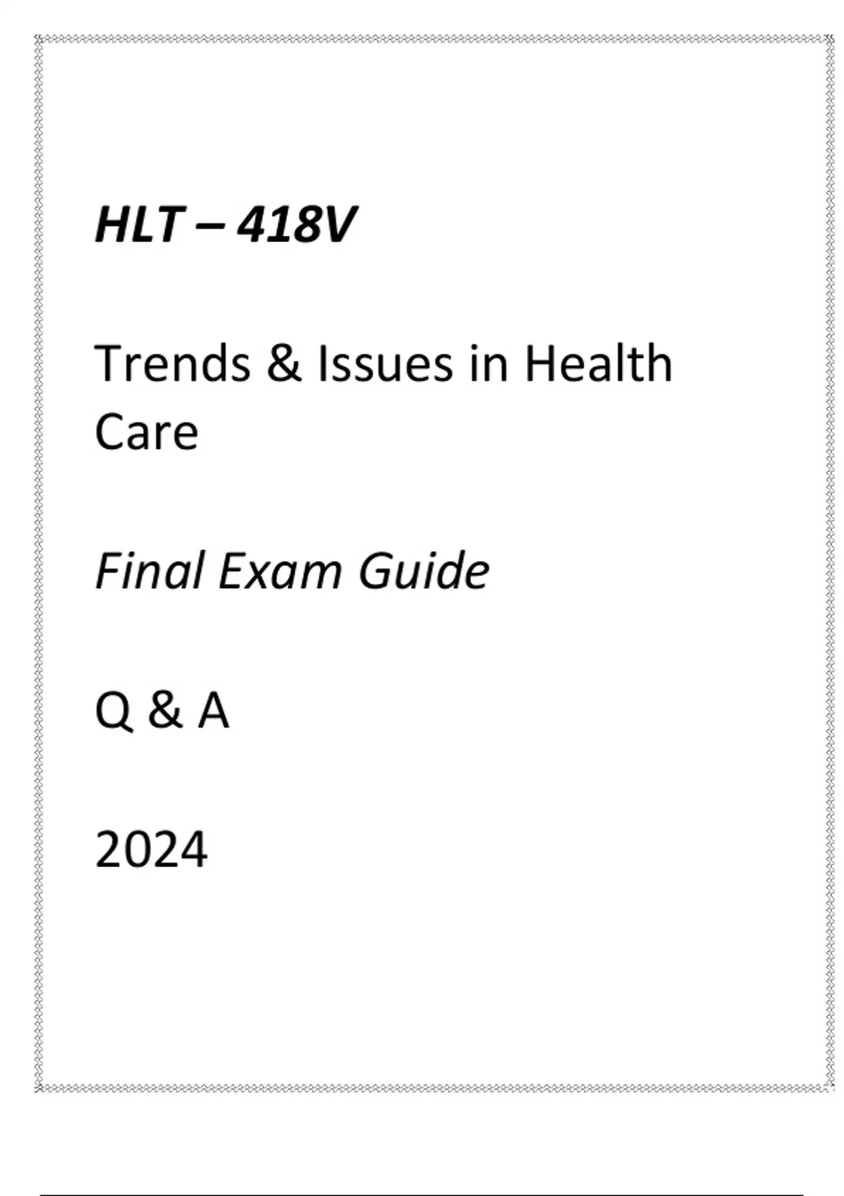 (GCU) HLT-418V TRENDS & ISSUES IN HEALTH CARE FINAL EXAM GUIDE Q & A 2024(GCU) HLT-418V TRENDS & ISSUES IN HEALTH CARE FINAL EXAM GUIDE Q & A 2024
