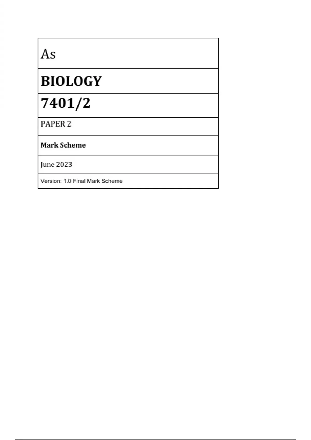 MARK SCHEME – AS BIOLOGY – 7401-2