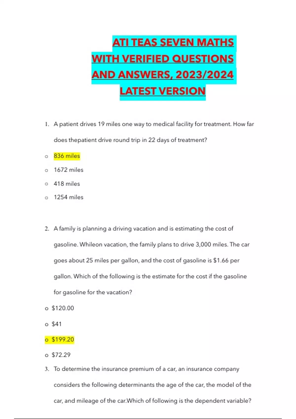 Ati teas seven maths with verified questions and answers, 2023/2024 LATEST VERSION