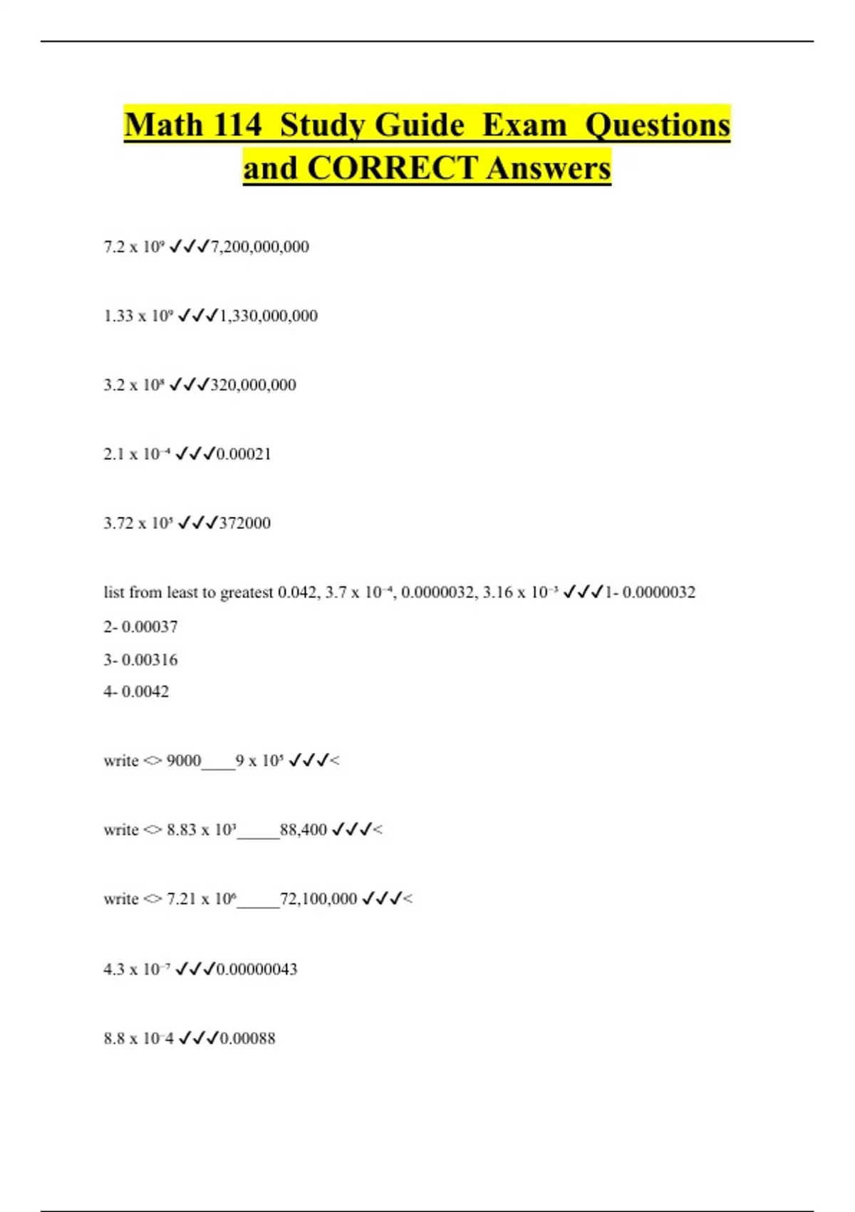 Math 114 Study Guide Exam Questions and CORRECT Answers