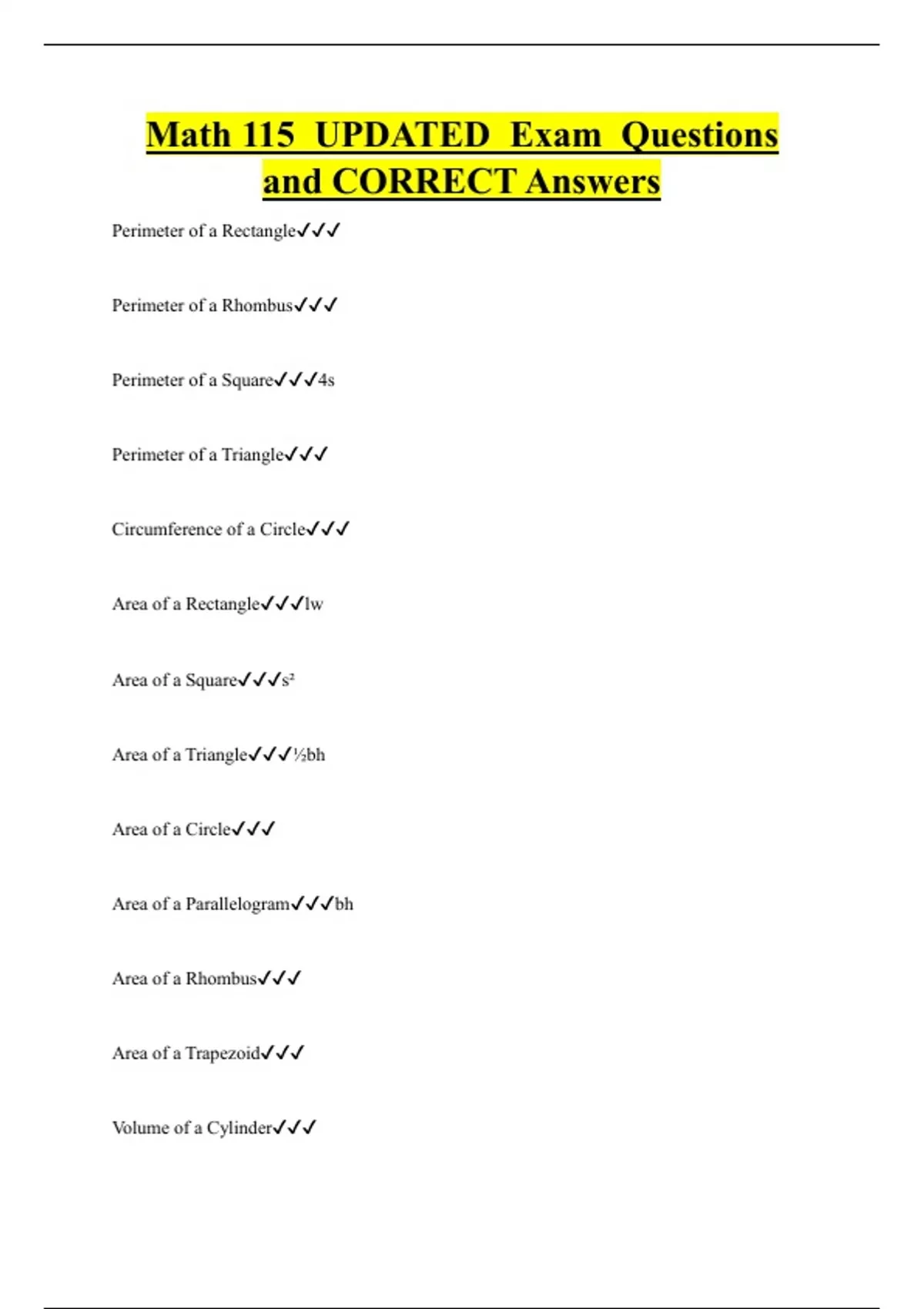 Math 115 UPDATED Exam Questions and CORRECT Answers