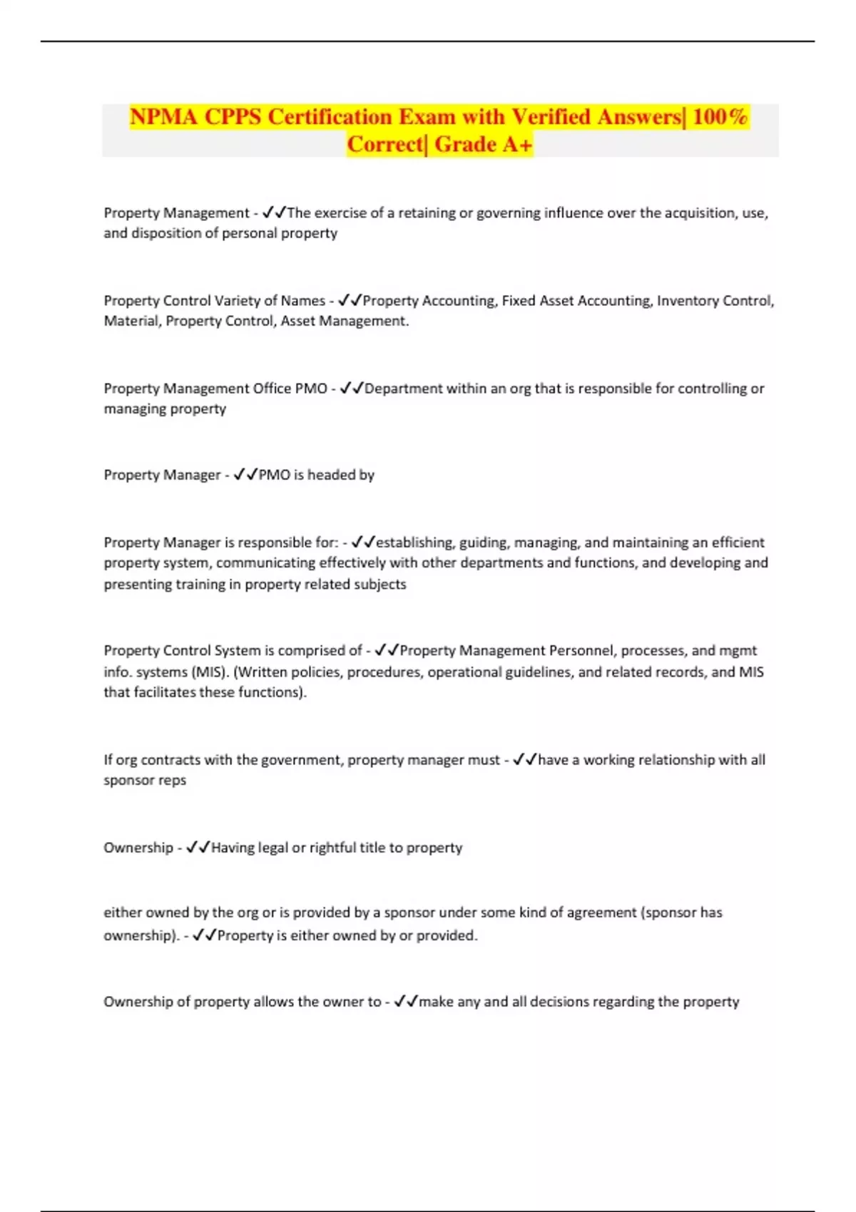 NPMA CPPS Certification Exam with Verified Answers| 100% Correct| Grade A+