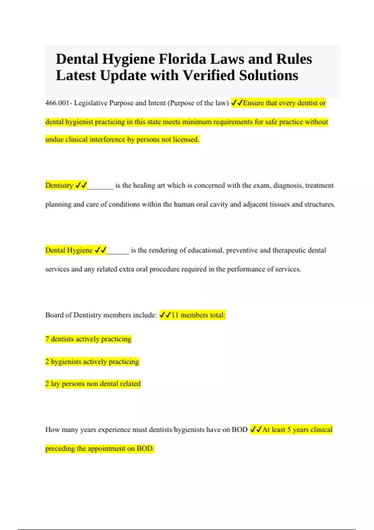 Dental Hygiene Florida Laws and Rules Latest Update with Verified Solutions