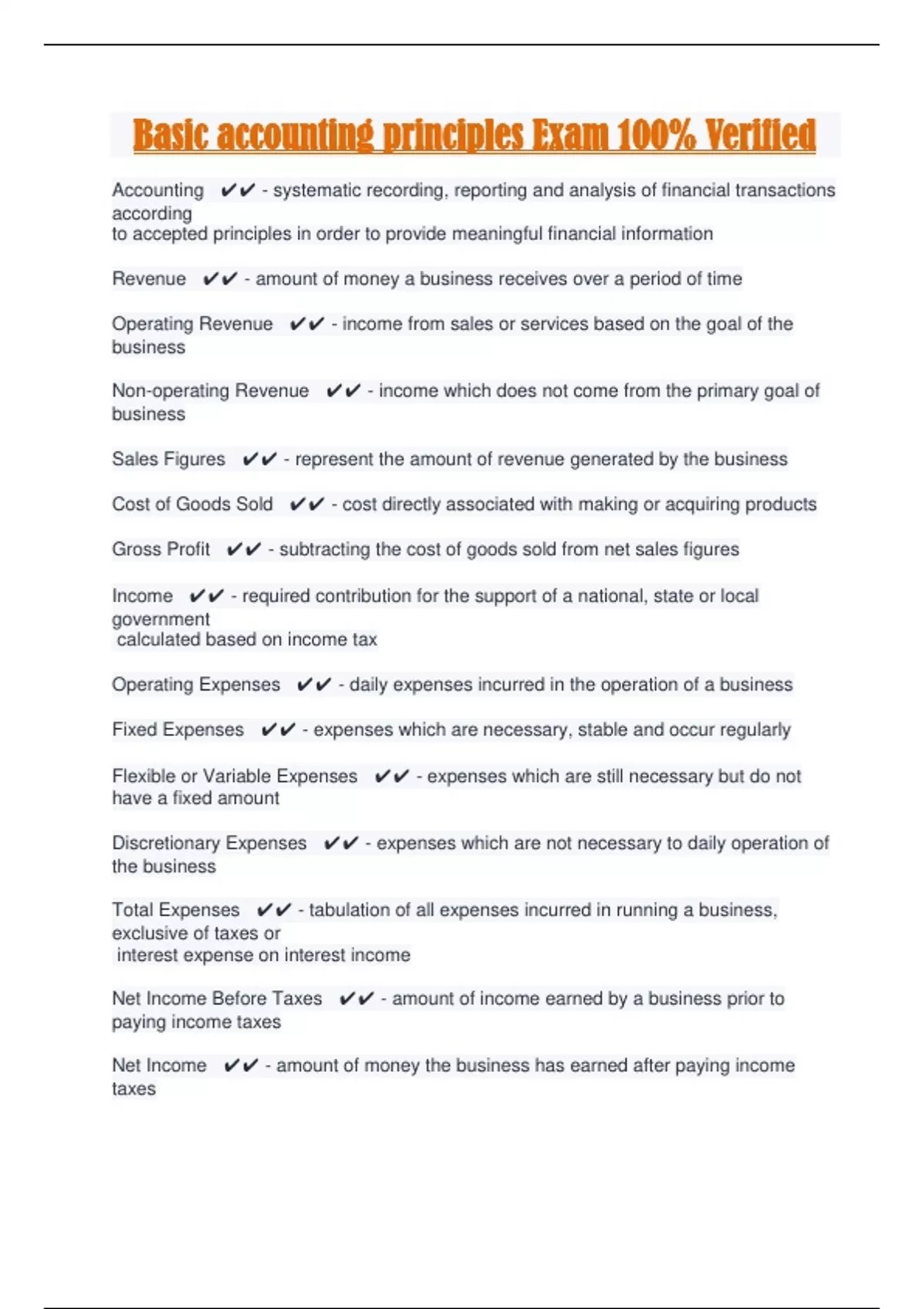 basic accounting principles exam 100 verified