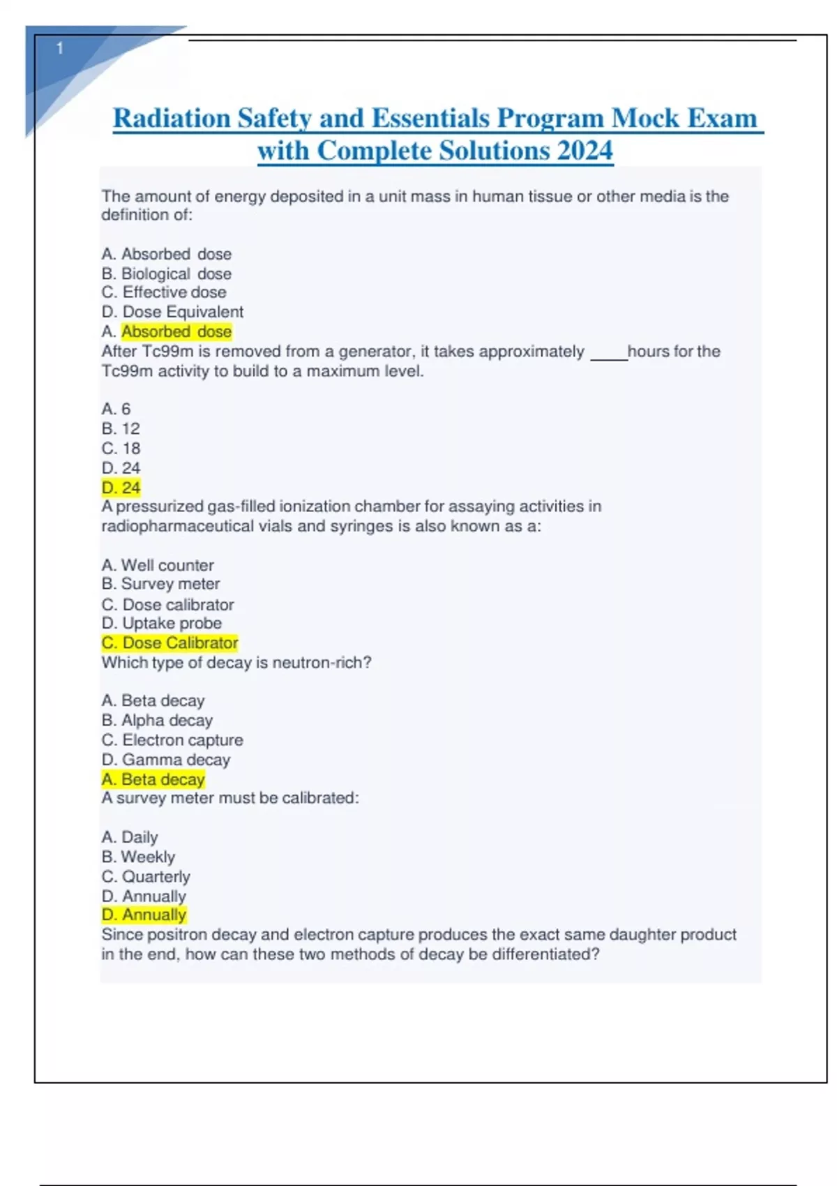 Radiation Safety and Essentials Program Mock Exam with Complete Solutions 2024