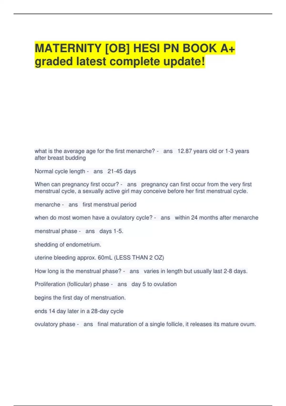 MATERNITY [OB] HESI PN BOOK A+ graded latest complete update